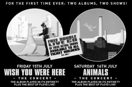 Alan Parson é in tournée in Italia, queste le date: Lunedì 4 aprile al Teatro Augusteo di Napoli; Martedì 12 aprile al Gran Teatro di Roma; Giovedì 14 aprile al Velvet Club di Rimini; Venerdì 15 aprile al Gate 52 di Verona. Per ulteriori informazioni www.blueskypromotion.it Una serata dedicata ai Pink Floyd! Il 27 dicembre 2004, al “Soullan“ di Cava de’Tirreni, é stata dedicata una serata interamente ai Pink Floyd. L’incontro, intitolato “Psichedelia ed arte poetica“, é stato curato dal nostro carissimo amico Pino Imparato. La serata é trascorsa percorrendo la storia del gruppo, con video inediti, musica e l‘esibizione di grosse raritá. Inoltre la voce recitante di Maria Teresa Kindjarsky-D’Amato ha interpretato i testi tradotti delle canzoni piú significative Il 28 gennaio 2004 il circolo Libero Pensiero di Lecco ha organizzato The Vegetable Man Night. Tra i numerosi gruppi che hanno preso parte al concerto i Kokoro Mayikibo (foto), Christian Rainer, Effetto Doppler, il nostro amico Dario Antonetti. La serata é iniziata alle ore 21 con la proiezione di vecchi filmati con Syd Barrett e dalle ore 22 é iniziato The Vegetable Man Project Live. ![]() Il gruppo tributo ai Pink Floyd canadese Comfortably Numb sta avendo un buon successo grazie ai suoi live ed i bigliettiin vendita per i loro show sono di solito sempre velocemente esauriti. Il gruppo ha in programma due diversi spettacoli, sono due album show , The Wall e The Dark side Of The Moon e una "Complete Retrospective" in cui vengono eseguiti brani presi dall’intero repertorio die Pink Floyd. Ad Ottawa, in Canada, il 12 marzo scorso hanno suonato l’intero album di Animals. Il prossimo importante appuntamento con il gruppo sará a Montreal il 28 maggio 2005. Anche il sito inglese Brain Damage ha dedicato uno spazio alle vittime di Tsunami : Pink Floyd Tsunami Raffle ha messo all‘asta oggetti da collezionismo di ogni genere per poter raccogliere fondi . Tra gli oggetti piú ambiti, una edizione del trentesimo anniversario di The Dark Side Of The Moon autografata da Gilmour, Mason, Waters e Wright! www.brain-damage.co.uk Il gruppo tributo piú famoso, The Australian Pink Floyd Show, tornerá all’evento annuale Liverpool Pops per esibirsi in due nuovi spettacoli. Un giornale locale, The Liverpool Echo, distribuisce gratuitamente, ad ognuno che acquista il biglietto, un doppio CD live del gruppo australiano che contiene i due nuovi spettacoli. Il gruppo é reduce da un lungo tour mondiale e per questo evento suonerá accanto a grossi nomi quali Diana Ross, Will Young, Meat Loaf, Brian Wilson, Ronan Keating, Andy Williams, Status Quo e Jools Holland. Il 15 luglio 2005,per festeggiare l’anniversario della pubblicazione, il gruppo eseguirá l’intero Wish You Were Here per la prima volta. Il 16 luglio suoneranno l’intero Animals ed in entrambe le serate eseguiranno anche alcuni brani di successo die Pink Floyd. Un altro gruppo tributo, The Surrogate Pink Floyd Show, proveniente dalla Scozia e formata da otto componenti include nel loro spettacolo i classici brani ed alcuni tratti anche da Animals. Un sito interessante che contiene rare memorabilia sui Pink Floyd lo trovate all’indirizzo www.pinkfloydvault.com . Il sito contiene bellissime immagini di raritá non in vendita ma anche una vasta sezione dedicata alla vendita di alcuni oggetti da collezionismo. L’11 febbraio 2005 il DVD Live At Pompeii (versione Director’s Cut) é stao messo in vendita in edicola allegato con L’Espresso. Il DVD fa parte della collana Live DVD de L’Espresso. Per ulteriori informazioni http://www.speciali.espressonline.it/prodotti/dvd_live Storm Thorgerson ,oltre alle preparazioni per la sua mostra negli Stati Uniti, sta organizzando una mostra per il prossimo inverno a Londra. Esibirá il suo lavoro fotografico fatto per i Pink Floyd dal 18 novembre fino a gennaio 2006 concentrandosi dal 1968 fino ai lavori piú recenti compresa l’edizione del trentesimo anniversario di The Dark Side of The Moon. Il luogo della mostra dovrebbe essere Proud Camden Moss, Greenland Street 10, a Londra, tel. 0044-207-4823867. |