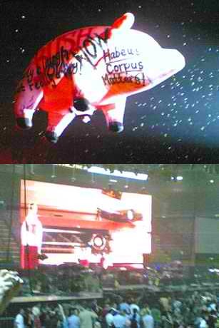 Finalmente l’attesa per l’unica data italiana del tour di Waters è terminata! Da parte mia è stato un lunedì massacrante, perché uscito dal lavoro alle 16.45, mi sono precipitato a Milano ad assistere all’evento di questo 2007. Il Forum si gremiva di parecchie persone di ogni età e ceto sociale, e questo fa ancora più capire l’importanza della musica che unisce varie generazioni riunite solo dalla passione per un artista. Verso le 21.05 è iniziato il grande show di Waters, che è lo stesso che ha portato in tour lo scorso anno, identica scaletta e stessi musicisti. Le vere grandi novità sono venute dalla scenografia davvero alla Floyd. Un mega schermo alle spalle della band che proiettava nuovi ed inediti filmati ad accompagnare le varie esecuzioni, due schermi più piccoli montati al lato del palco che proiettavano le immagini “in diretta” dei musicisti e dello stesso Waters. Come ciliegina sulla già buona torta si sono aggiunti altri spettacolari effetti: bolle di sapone e coriandoli che inondavano il pubblico. Ma gli effetti più spettacolari sono avvenuti durante l’esecuzione di “Perfect Sense pt. 1-2” dove un manichino vestito da astronauta della Nasa ha volteggiato sul pubblico; o mentre le note di “Sheep” scuotevano il palasport, un mega maiale gonfiabile si aggirava sulla testa dei presenti con fare sospetto e al termine della suite di “Dark Side” che un futuristico prisma ottico inondava la vasta sala. Doveroso scrivere della presenza, almeno tra gli spettatori, di Barrett… le sue immagini hanno fatto il commento visivo durate l’esecuzione di “Shine On You Crazy Diamond”. Ho scritto tra gli spettatori perché mi pareva che il buon vecchio Waters non abbia avuto nessun sentore emotivo mentre suonava ma… the show must go on! Perciò chi ha assistito a questo show ha visto l’evoluzione di quello dello scorso anno, scenograficamente molto più d’impatto e spettacolare. Sempre grandi i vari musicisti specialmente la grande PP Arnold, Katie Kissoon, rispettive voci soliste in “Perfect Sense” la prima, e in “The Grat Gig In The Sky”, la seconda. Voglio anche citare il giovane ma grande chitarrista Dave Kilminster che ha saputo non far notare la mancanza di un certo Gilmour. Ma dopo i complimenti bisogna anche scrivere le critiche, e a dire il vero le uniche accuse mosse sono nei confronti dei musicisti. Alcuni errori sono stati minimi, ma il più madornale è stato quello sull’attacco della batteria in “Shine On…” ragazzi che orrore! Capisco l’età, capisco la stanchezza… posso capire tutto, ma come si fa a sbagliare in maniera così eclatante! Neanche le cover band fanno errori così! Considerato che sono due anni che suonano la stessa scaletta. Comunque, il buon vecchio Roger è apparso sempre in ottima forma e molto scherzoso con il pubblico, lontani i tempi degli sputi! Alla fine ha ringraziato i presenti, almeno in quella occasione mi sembrava commosso per il calore che gli spettatori gli hanno accreditato. La mia cronaca si conclude con un ringraziamento all’amico Mirko, per la sua eterna gentilezza e con un altro grazie ad una persona che mi è sempre vicina ma che vive distante da me! SCALETTA DEL “THE DARK SIDE OF THE MOON TOUR 2007” PART 1 In The Flesh – Mother – Set The Controls… - Shine On You… - Have A Cigar – Wish You… - Southampton Dock – The Fletcher Memorial Home – Perfect Sense Pt.1/2 – Leaving Beirut – Sheep PART 2 The Dark Side Of The Moon PART 3 - ENCORE The Happiest Days Of Our Lives – Another Brick… Pt.2 – Vera / Bring The Boys Back Home – Comfortably Numb Luciano Cassulo |